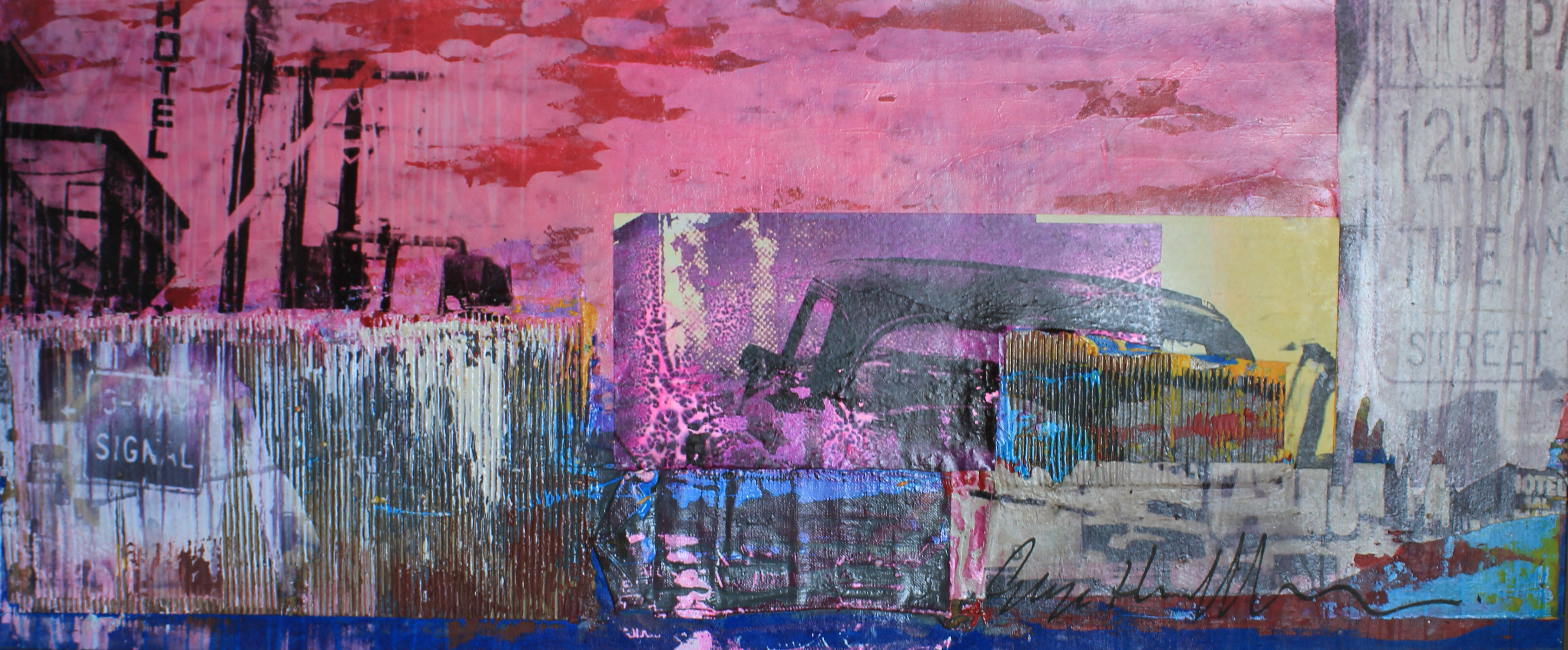 Road Trip (2016) reveals saturated colors and layered images that evoke an urban and pop-inspired imagination. Heidweiller blends typographic fragments and graphic signs with textured surfaces, recreating the feeling of a metropolitan journey among signs, symbols, and visual suggestions. The work stands out for its chromatic intensity and the ability to transform everyday details into a universal artistic language.