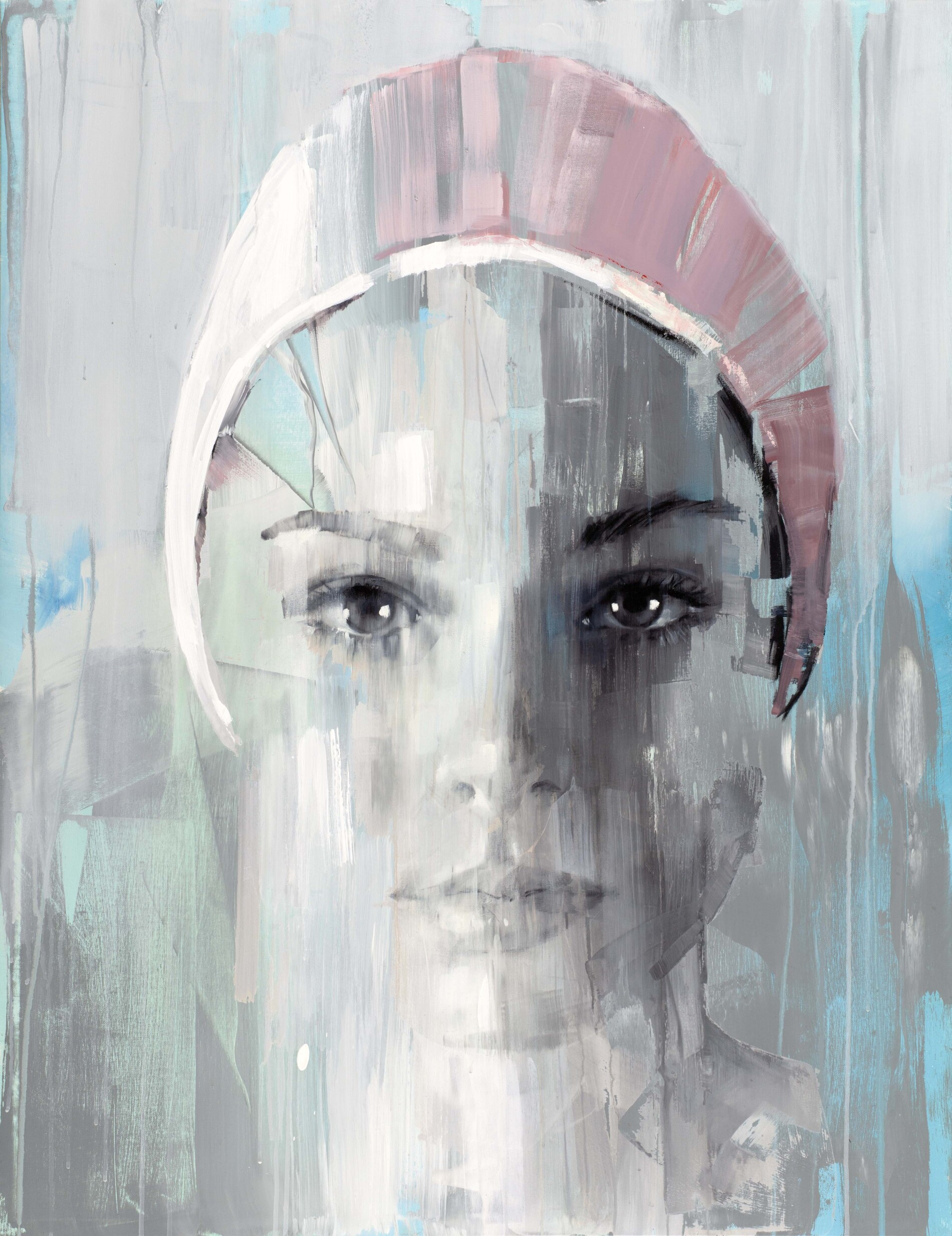 The painting proceeds by superimposition and erasure, allowing the face to emerge as if through a veil. The direct, silent gaze becomes the emotional fulcrum of the composition, inviting intimate contemplation. The work conveys a fragile, suspended presence, emblematic of the artist's exploration of figuration and abstraction.