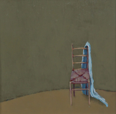 Pastel colours and elegant lines characterise this vibrant still life by Beth Richardson: two vases of flowers – a symbolic representation of two friends, lovers, or siblings? – seem to communicate as they reach out towards one another with their bouquets. The sky-blue background brilliantly illuminates the atmosphere of the painting, hypnotically drawing the viewer’s gaze.