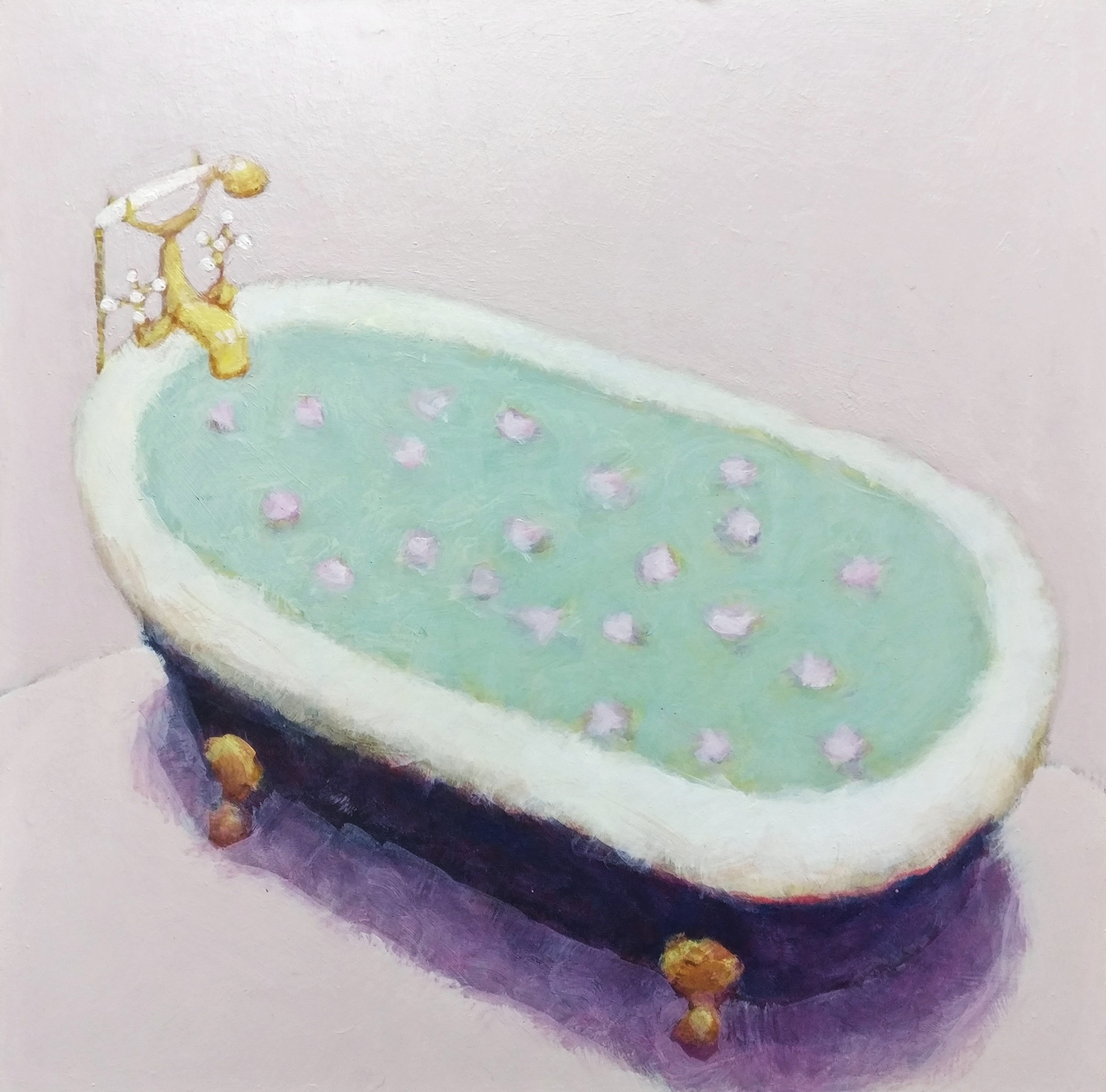 A bathtub filled with water, dotted with small flowers, transforms an everyday gesture into a magical moment. Beth Richardson isolates the scene, reducing it to its essentials and infusing it with a quiet sense of intimacy. Soft tones and a minimal composition create a silent image, where time seems to slow down and every detail takes on a delicate significance.