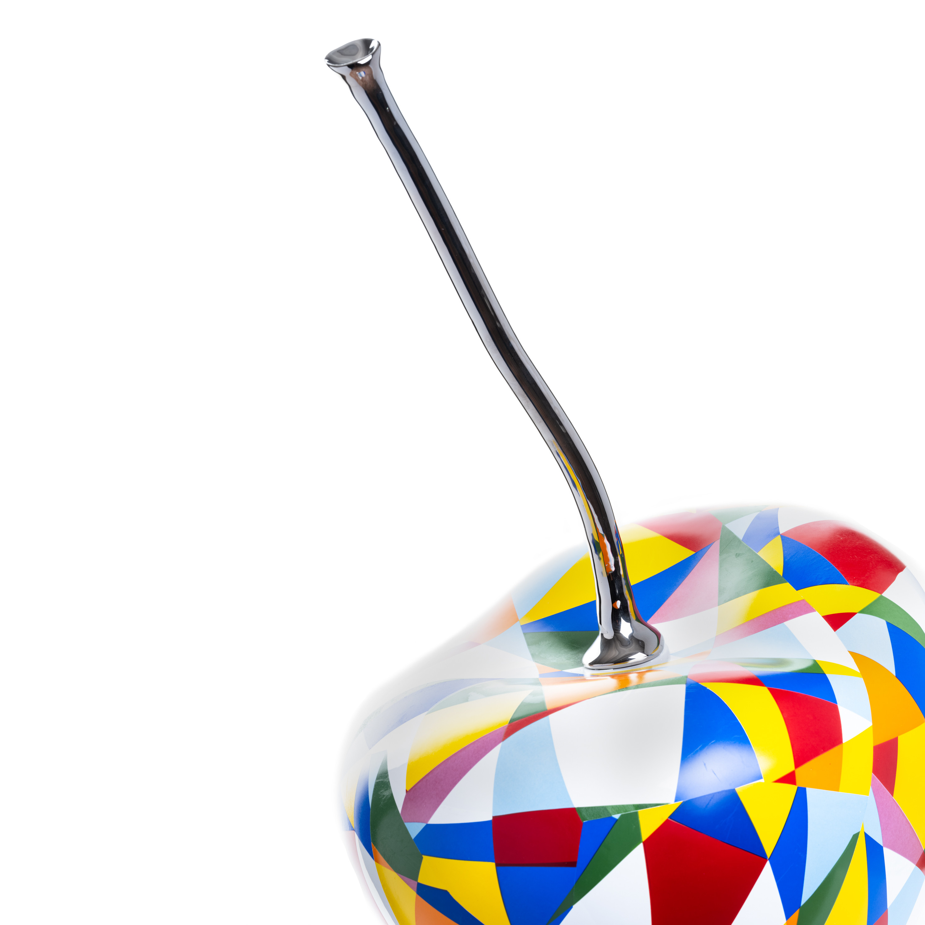 La ciliegia di Giorgio Laveri, rivestita di smalti policromi ispirati al costume di Arlecchino, è un’esplosione di vitalità pop. Cherry Arlecchino trasforma il frutto in un simbolo monumentale di gioia, desiderio e gioco, dove natura e cultura si intrecciano in un linguaggio ironico e festoso.