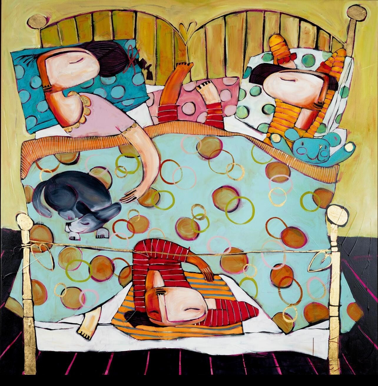 Un momento di quiete sospeso tra colori e sogni. Janine Daddo racconta con delicatezza l’intimità e l’affetto di un gesto semplice.