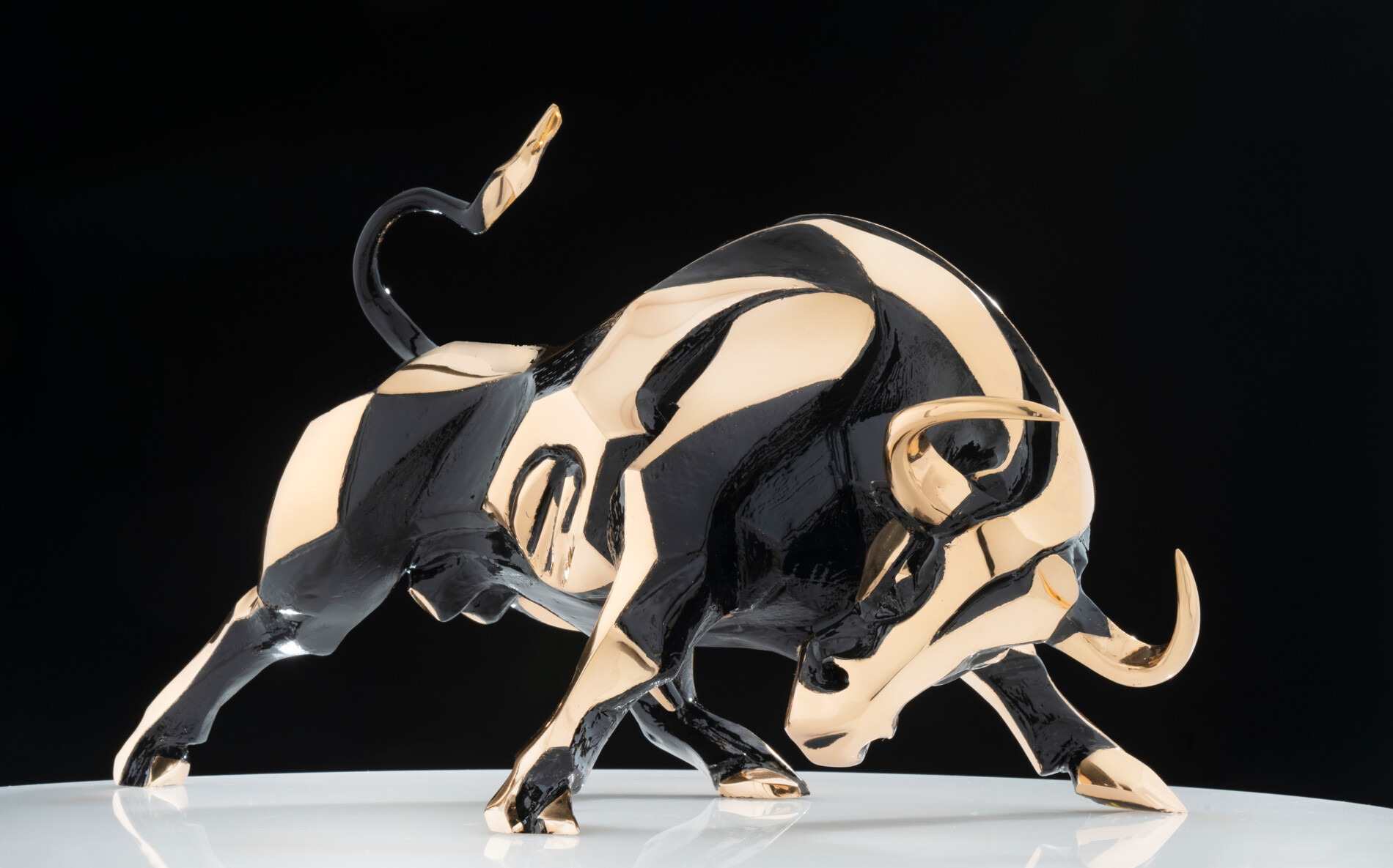 Segue la versione Bulldozer Innovation sempre in bronzo, con proporzioni più ampie che esaltano la tensione del movimento. La posa dinamica, come sospesa tra scatto e ripresa, crea un senso di equilibrio instabile, mentre il contrasto tra superfici satinate e levigate esalta la tridimensionalità dell’opera.