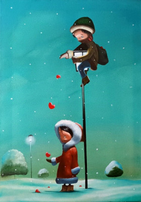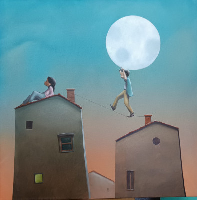 L’opera richiama alcuni dei temi più cari a Diego Santini: la dolcezza dei sentimenti, il richiamo affettuoso della casa e quel legame interiore che ci fa sentire al sicuro, anche quando siamo lontani. Un’immagine che trasmette serenità e tenerezza, ricordandoci che ciò che amiamo resta sempre con noi.