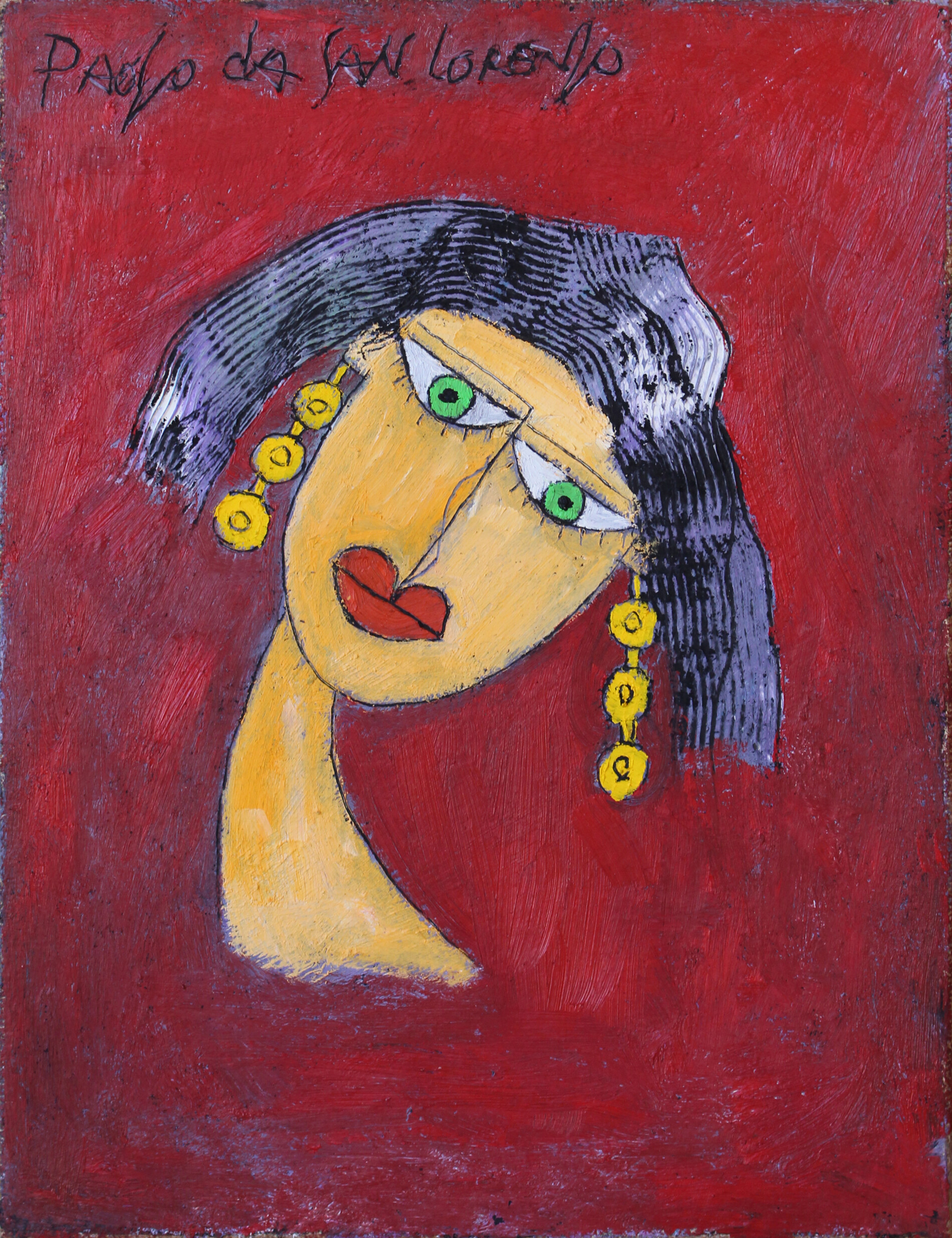 Uno dei soggetti più amati dal Maestro Paolo da San Lorenzo: la baronessa, una donna nobile da lui amata in passato e mai dimenticata che ha dato vita a un ciclo pittorico di rara intensità e bellezza. In quest’opera la palette cromatica è dominata dalla tensione tra i toni caldi del rosso e quelli più freddi del viola, che rende il volto della donna un vero catalizzatore di attenzione.