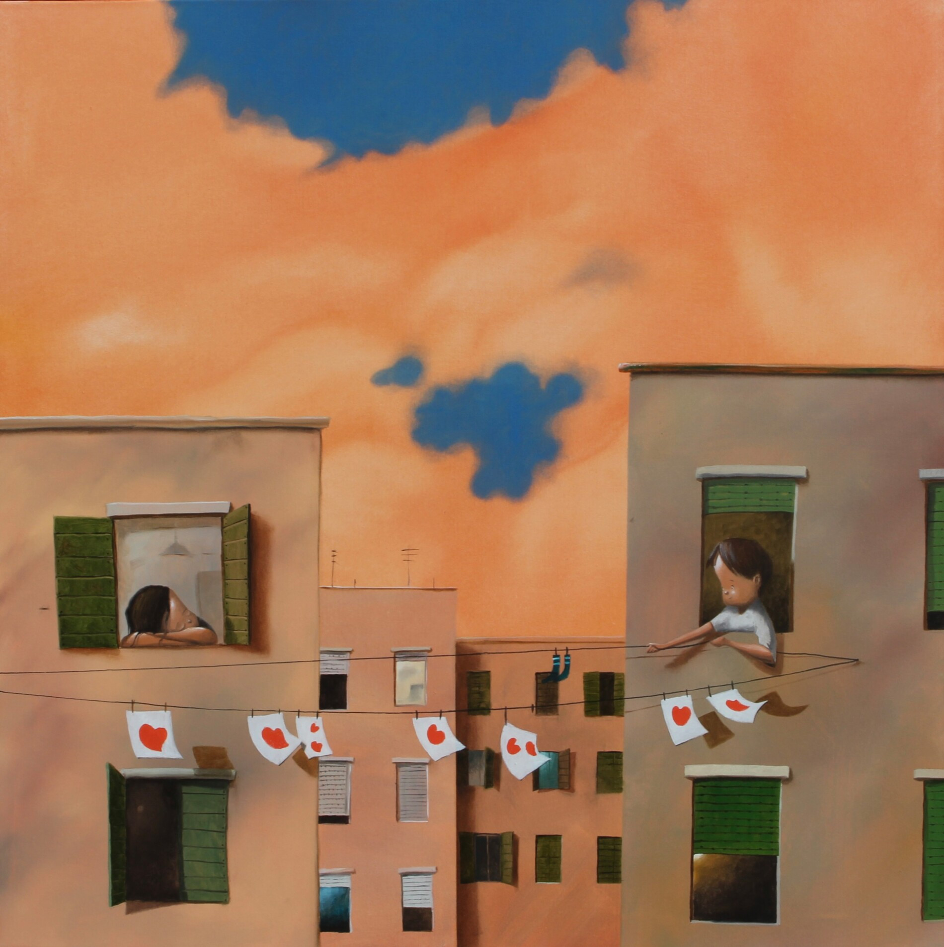 In questa composizione in formato quadrato, l’artista celebra la creatività dei sentimenti e la capacità di trasformare la quotidianità in un gesto inatteso, capace di sorprendere e avvicinare.