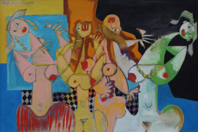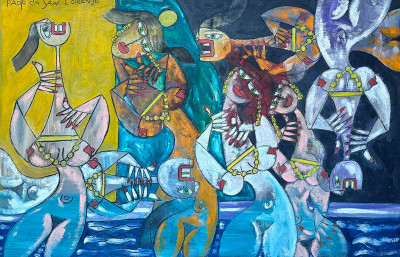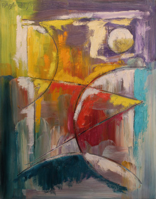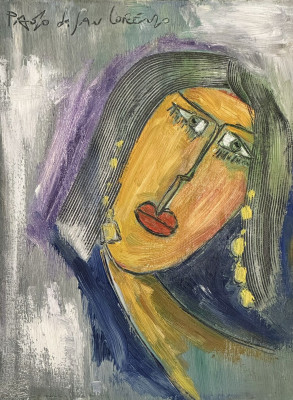 Uno dei soggetti più amati dal Maestro Paolo da San Lorenzo: la baronessa, una donna nobile da lui amata in passato e mai dimenticata che ha dato vita a un ciclo pittorico di rara intensità e bellezza. In quest’opera la palette cromatica è dominata dai toni dell’azzurro e dell’arancione, che rendono il volto della donna un vero catalizzatore di attenzione.