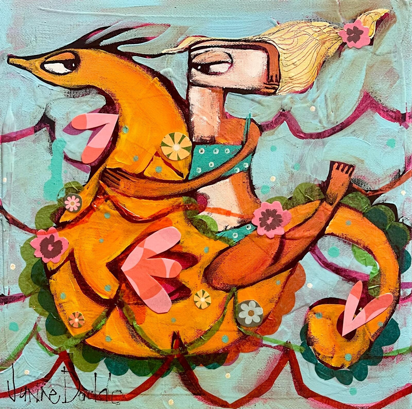 Guidati dalla luce interiore e dalla bellezza del sogno. Adventure bound  è una favola pittorica che racconta il viaggio di due anime unite, in “cammino” verso il futuro. Janine Daddo costruisce un universo incantato dove l’oceano diventa simbolo di speranza e determinazione. Una tela intensa e delicata allo stesso tempo.
