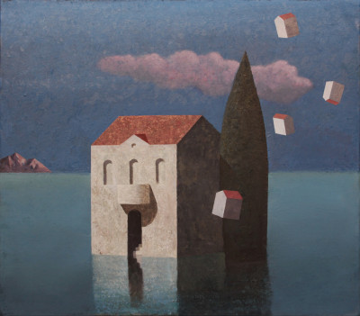 Un oggetto che sembra una nave ma potrebbe non esserlo affatto: Brandes costruisce qui una delle sue ambiguità più affascinanti. Il vapore si alza compatto, modellato da una pittura materica e vibrante che trasforma il fumo in una vera architettura di luce. Il “piroscafo” resta immobile sopra un tavolo come in una scena sospesa, a metà tra gioco e rivelazione. È il momento in cui la forma potrebbe muoversi, cambiare, partire - oppure rimanere lì, perfetta nella sua quieta incertezza.