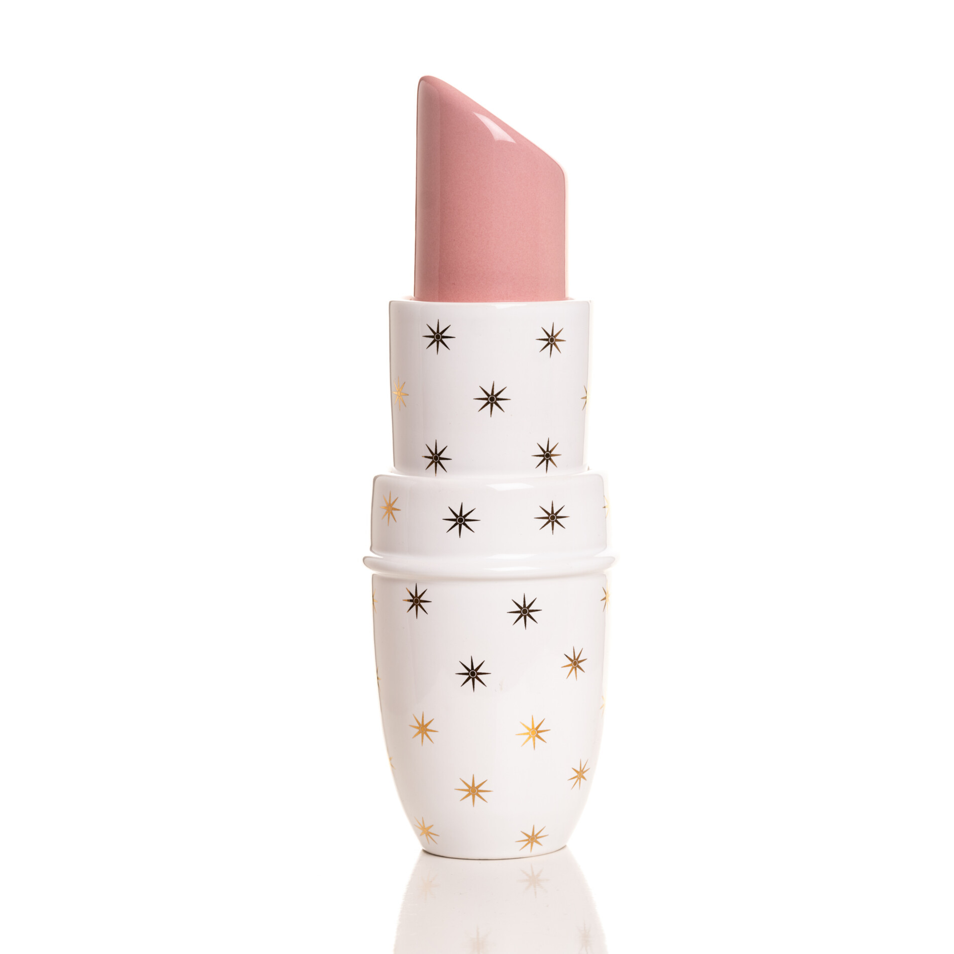 Con smalto bianco e decorazioni a stelle dorate e nere, questa versione di Mini Truka porta con sé un’aura festosa e onirica. Giorgio Laveri trasforma il rossetto in un talismano pop, dove la femminilità si intreccia al gioco e al desiderio di meraviglia.